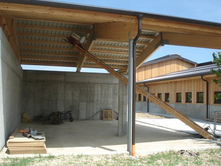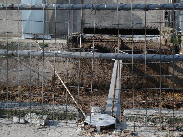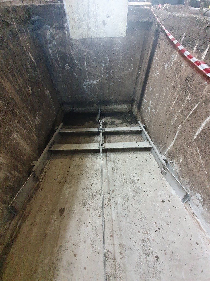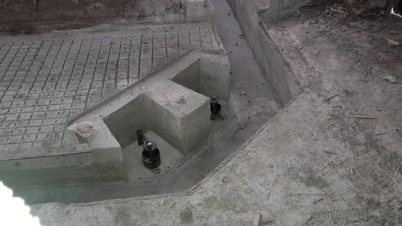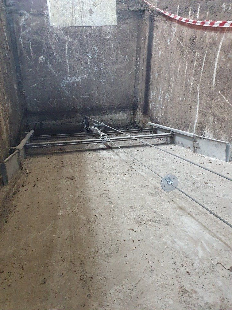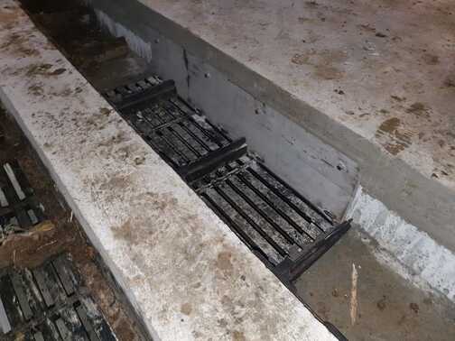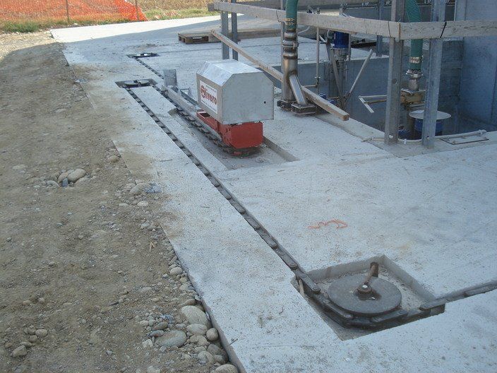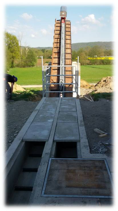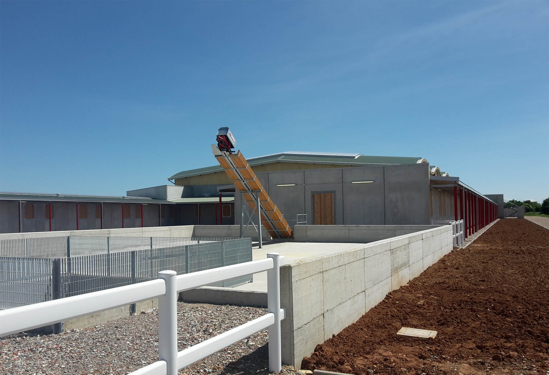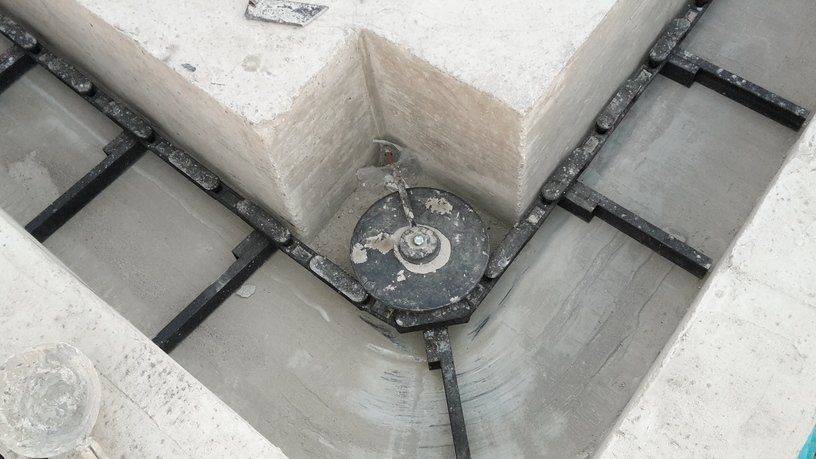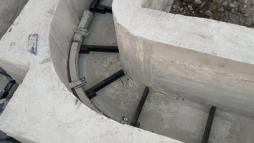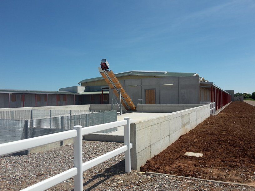 La chaîne passe à l'intérieur d'un canal en béton, dans lequel les broches et les courbes produites par nous sont murées, de manière à pouvoir faire tourner la chaîne à l'intérieur de la grange.