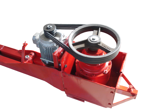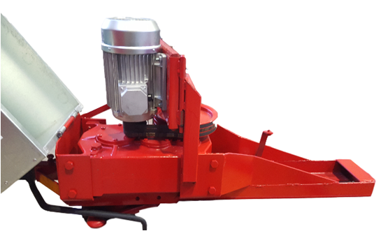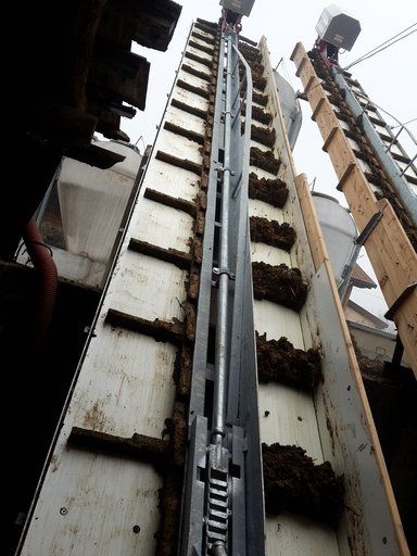 La chaîne est entraînée au moyen d'un réducteur situé à l'extrémité supérieure de l'élévateur.