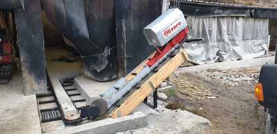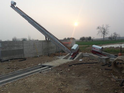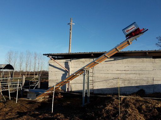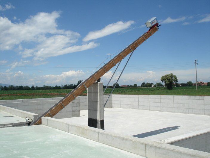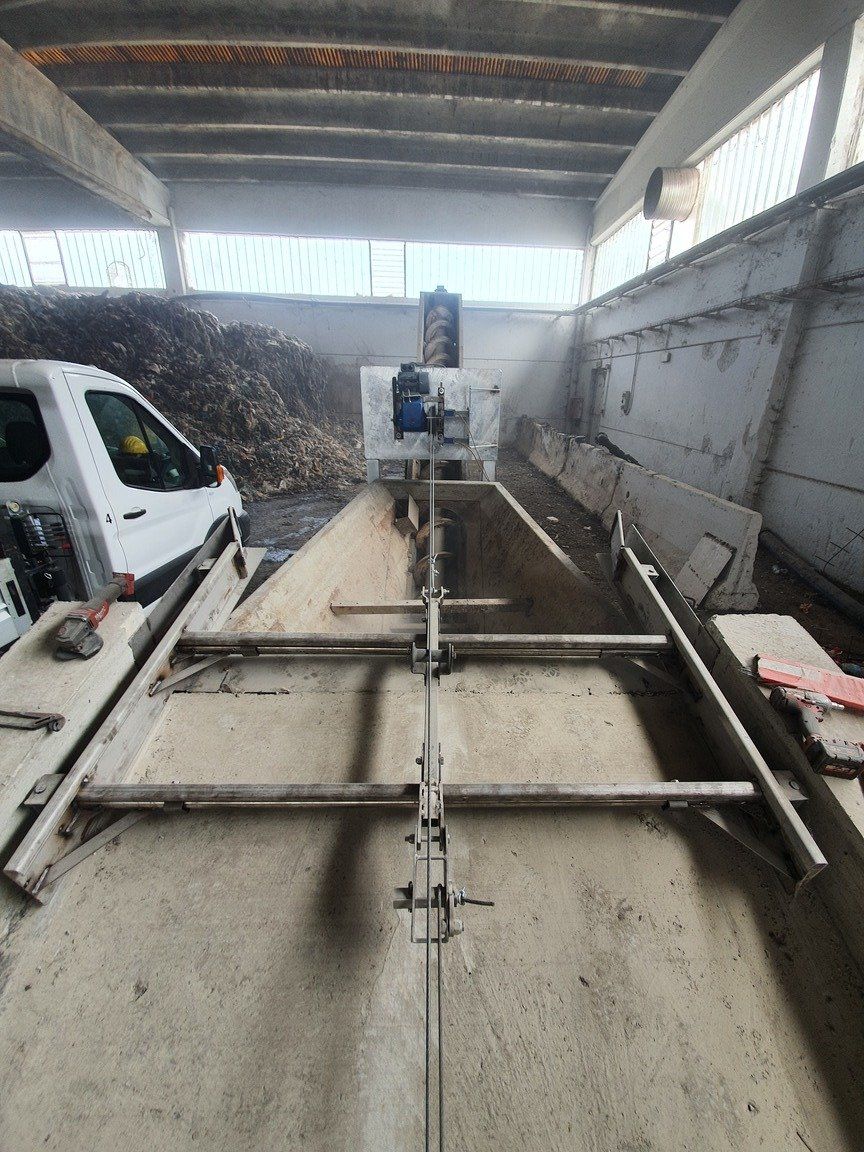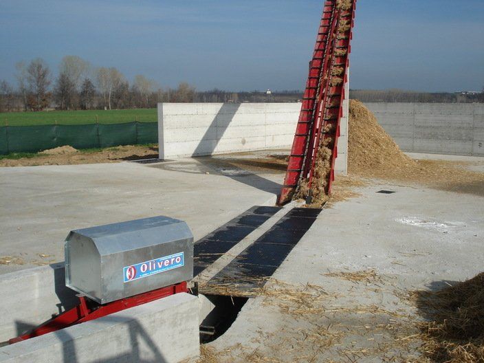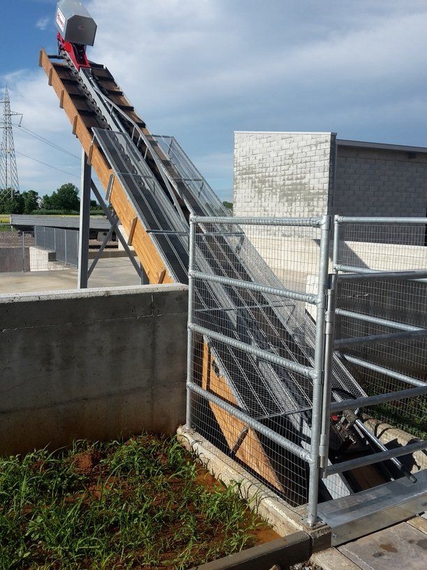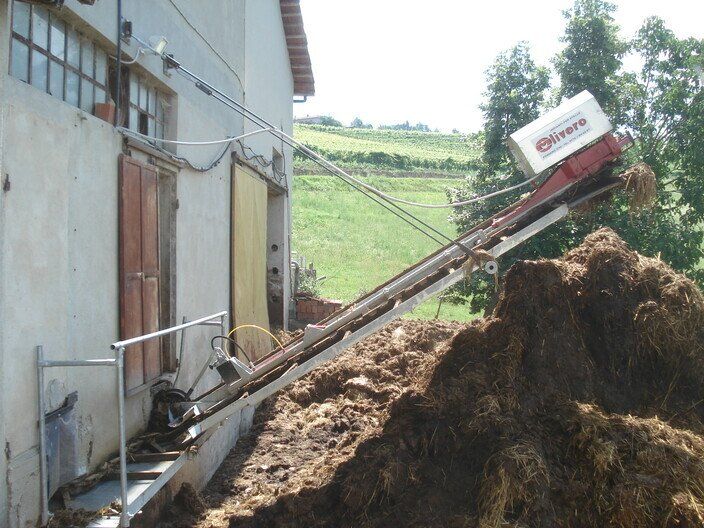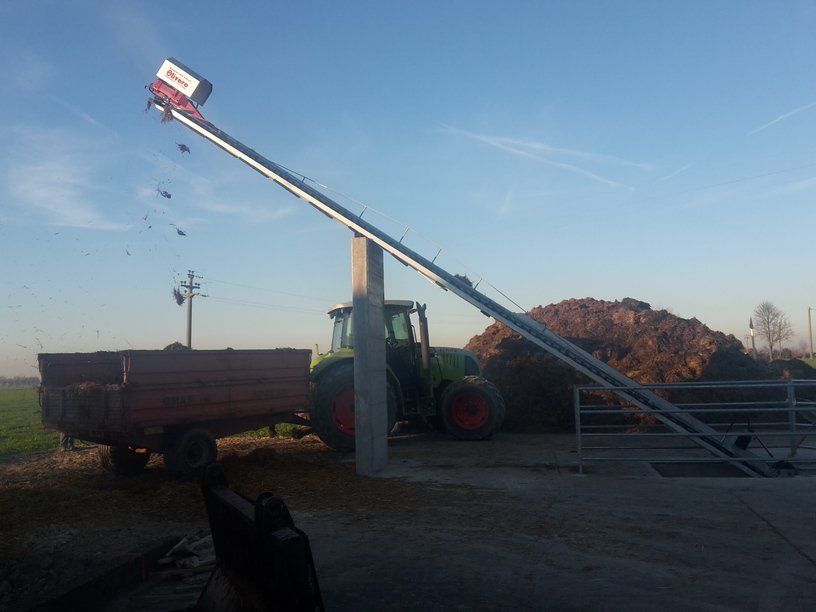 C'est un système en circuit fermé, nécessaire pour le nettoyage dans les étables de : bovins, chevaux, lapins, poulets et porcs. Le mouvement de la chaîne s'effectue au moyen d'un réducteur de taille appropriée, relié à un moteur électrique, la chaîne coulissant dans un canal transporte le fumier sur un élévateur qui atteint le sommet et le décharge sur un dumper ou dans un engrais.
