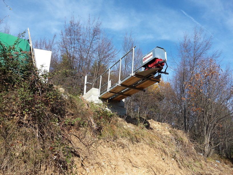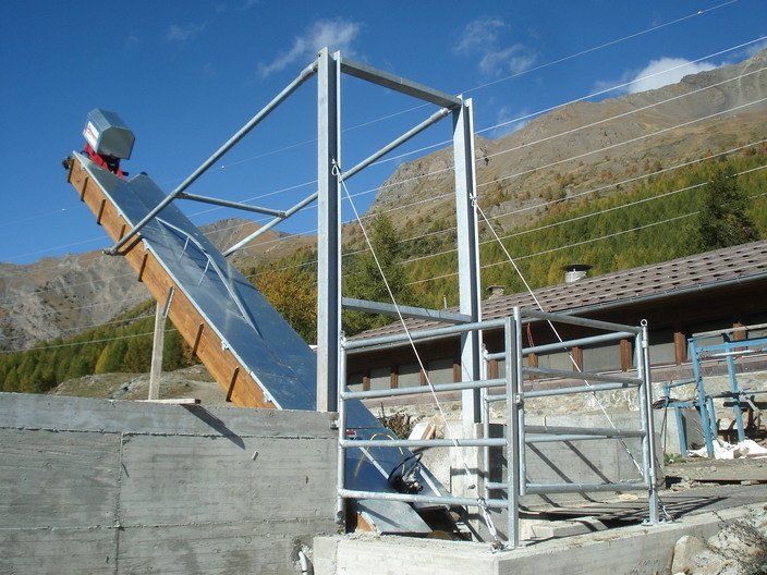 Structure en fer galvanisé à chaud ou peint électro-soudé, il peut avoir différentes longueurs et largeurs selon le système dans lequel il sera installé. Les canaux sont recouverts de perles en bois de mélèze, sur demande ils peuvent être recouverts de panneaux stratifiés ou d'acier inoxydable.