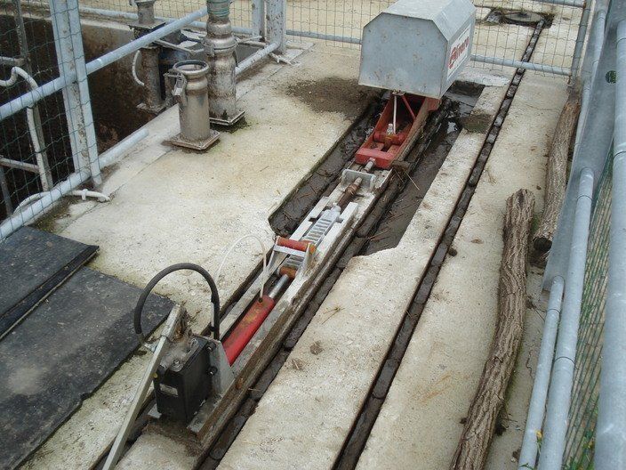 Il s'agit d'un système en circuit fermé, nécessaire au nettoyage des étables à stabulation libre, dans lequel un groupe réducteur génère le mouvement d'une caténaire qui, circulant dans un canal, placé au centre du couloir à nettoyer, entraîne un racleur, qui pousse le purin jusqu'au bout de l'allée. Le racleur peut être fixe, à volet ou delta.